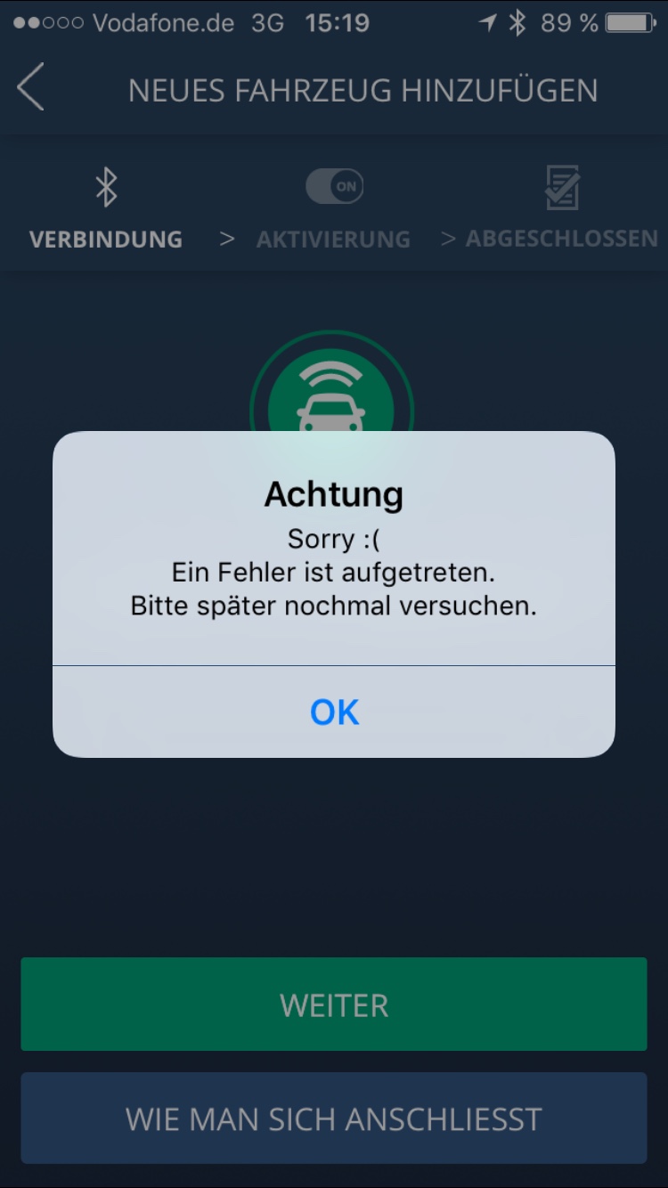 Das erhärtet meinen Verdacht, dass einfach in dem Uconnect System/Server meine FGN nicht hinterlegt ist und es deswegen nicht klappt.