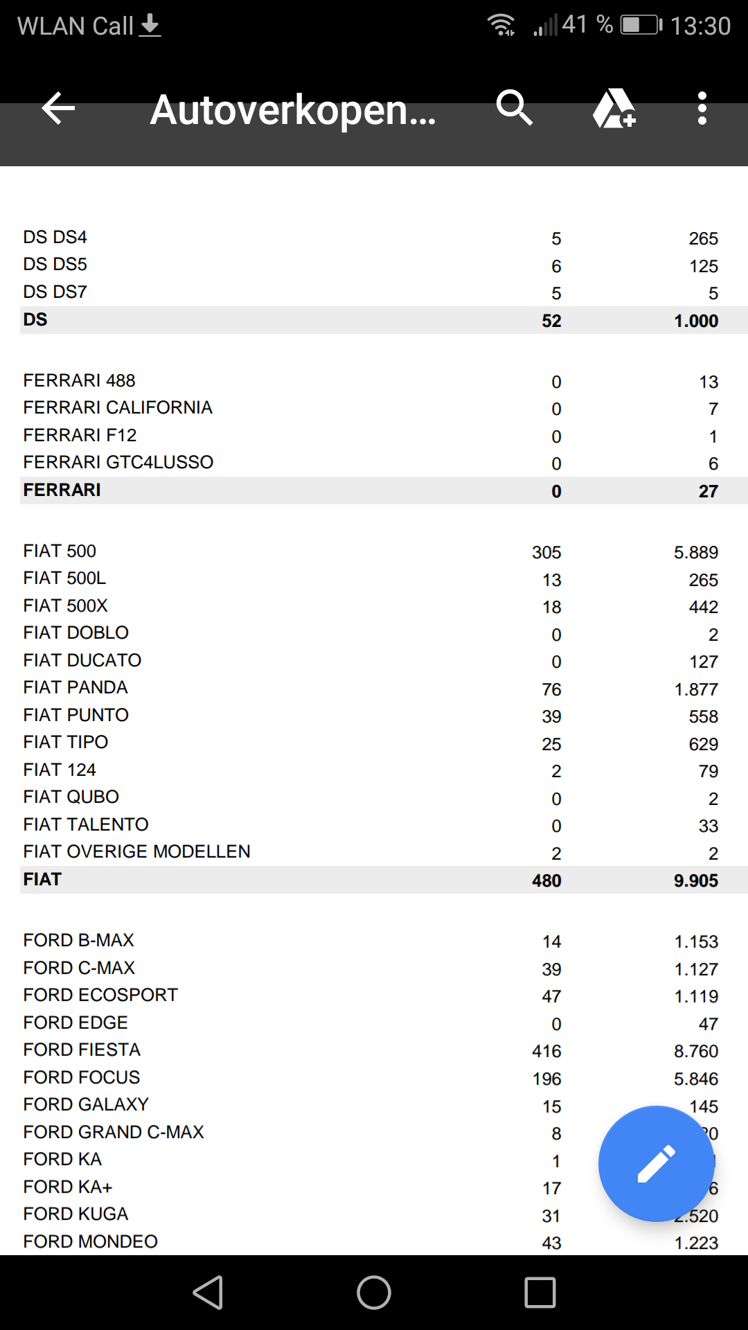 • Ich wette Fiat schaut hin und sagt "na und? Europa ist uns egal...und überhaupt nur die Schuld der Limousine....und und...und ach egall nananananana". Zumindest stelle ich mir die Studenten-Strategen dort vor. Wer mal hier meinte, es geht um Abschreibungen, Subventionen und Taktik.....sorry das hat nichts mehr mit Taktik zu tun. den zweiten Monat unter 500 Stück, gerade im Dezember und Januar gibt es unheimlich viele Eigenzulassungen. Ich wette in 2 Monaten sind nicht mal 400 Stück auf Kunden zugelassen worden.