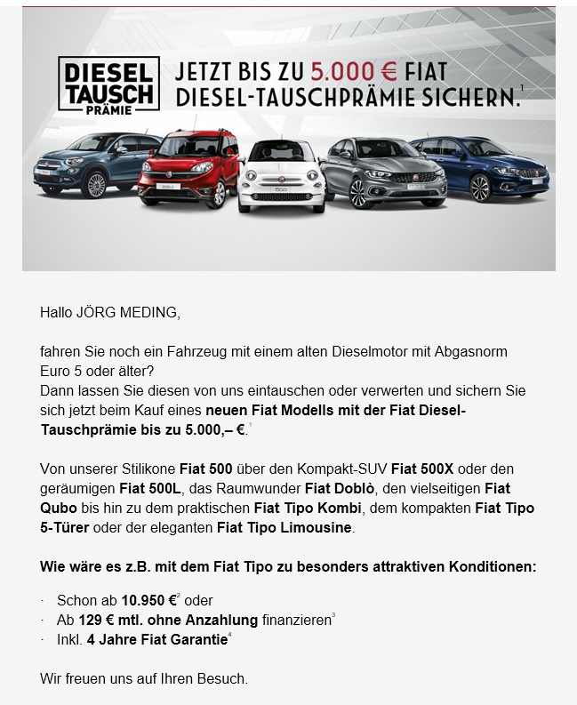 Diesel Tauschprämie von FCA