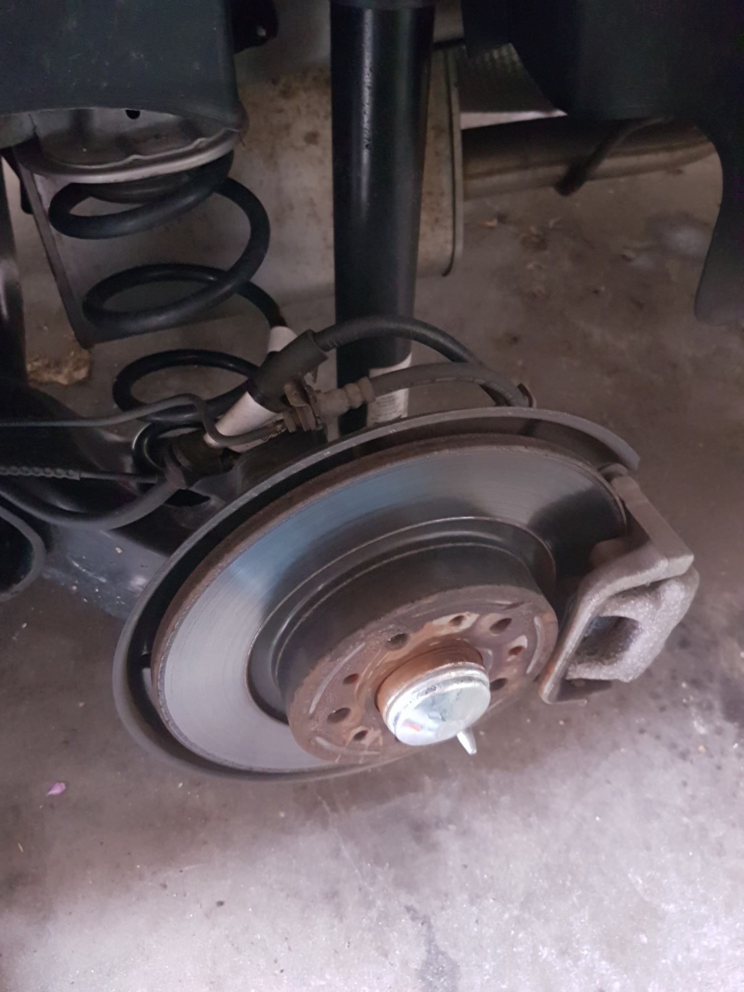 • Soo, gerade gewechselt, schaut vom Zustand gut aus. Der obere Rand der Bremse ist schwarz lackiert, ich denke wegen den Alufelgen.
