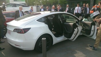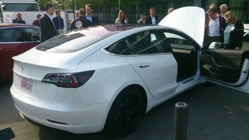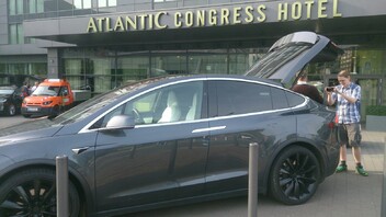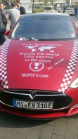 Der weiße Tesla Model S ist ja in Europa erst ab 2019 zu bekommen, aber ein Privatfahrer aus Kalifornien hat sein Fahrzeug nach Europa verschifft und tourt nun durch Europa um sein Fahrzeug zu refinanzieren. Er kam heute um 17:30 mit zwei Begleitteslas bei unserem Tagungshotel vorgefahren und wurde begutachtet. Danach fuhr er nach Hilden, denn ein dort ansässiger Bäckereibetrieb, der komplett auf e-Autos umgestellt hat und damit stark kosteneinsparend und umweltneutral agiert, hat wohl die Einladung ausgesprochen.