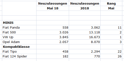 Fiat Spider 33% Zuwachs gegenüber Vormonat, aber zum Vorjahreszeitraum -41%, gewerbliche