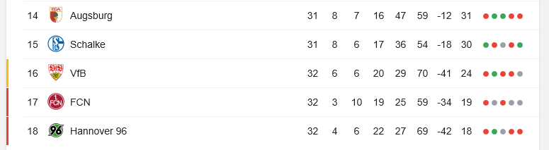 Welche Mannschaften belegen die letzten 3 Tabellenplätze?