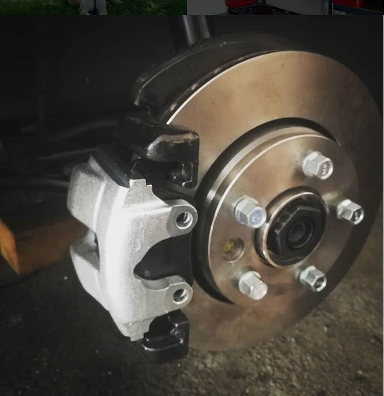 Bremssättel VA: E36 328i, leicht modifizierte Träger, verbaut mit Bremssatteladapter (e30.de / 300mm.de)