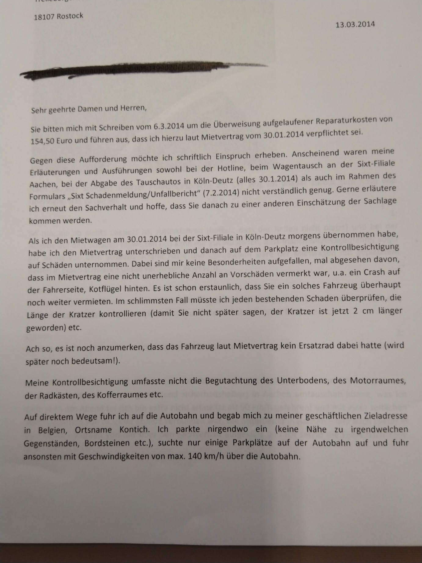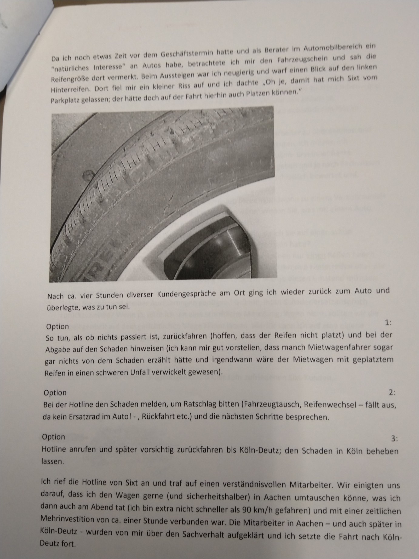 Bin beim Aufräumen auf einen alten Schriftverkehr mit Sixt aus dem Jahre 2014 gestoßen. Die haben mich damals mit einem Riss im Reifen auf die Strecke geschickt, ich habe es entdeckt und hinterher sollte ich noch für den Schaden aufkommen.