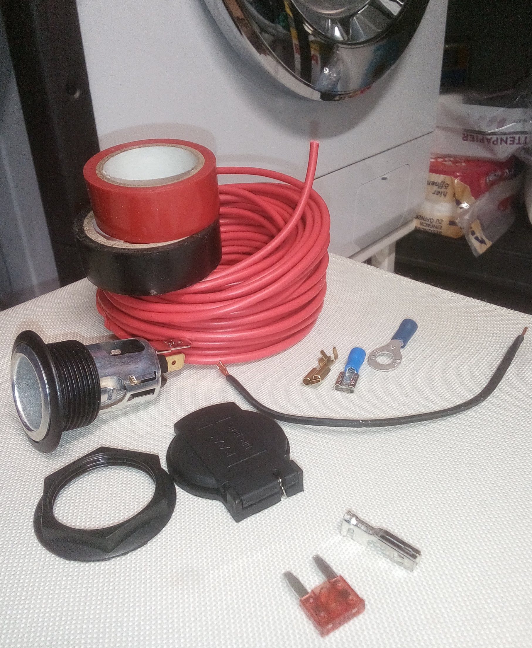 - wie üblich 12V-Dose an 1,5qmm-Kabel mit Dauerplus am vorgesehenen Sicherungsplatz und daran 1x 3A-USB-Dose abschaltbar