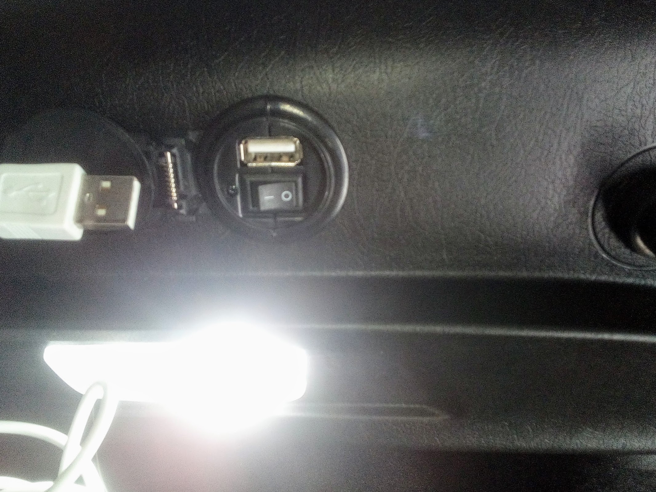 - 1x 3A-USB-Dose an 1qmm-Kabel am Sicherungsplatz der bei mir nicht vorhandenen Lordosenstütze -