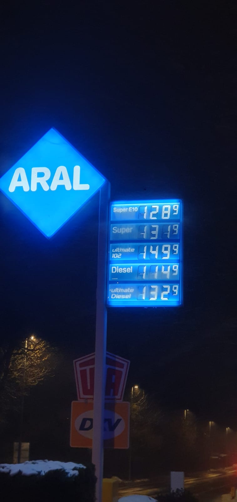 Gestern Abend durch Zufall an der Aral in Bad Düben vorbeigefahren und 1,33€ für Super E5 erblickt. Hatte noch 3 oder 4 Striche auf der Anzeige, kam mir also ganz recht.