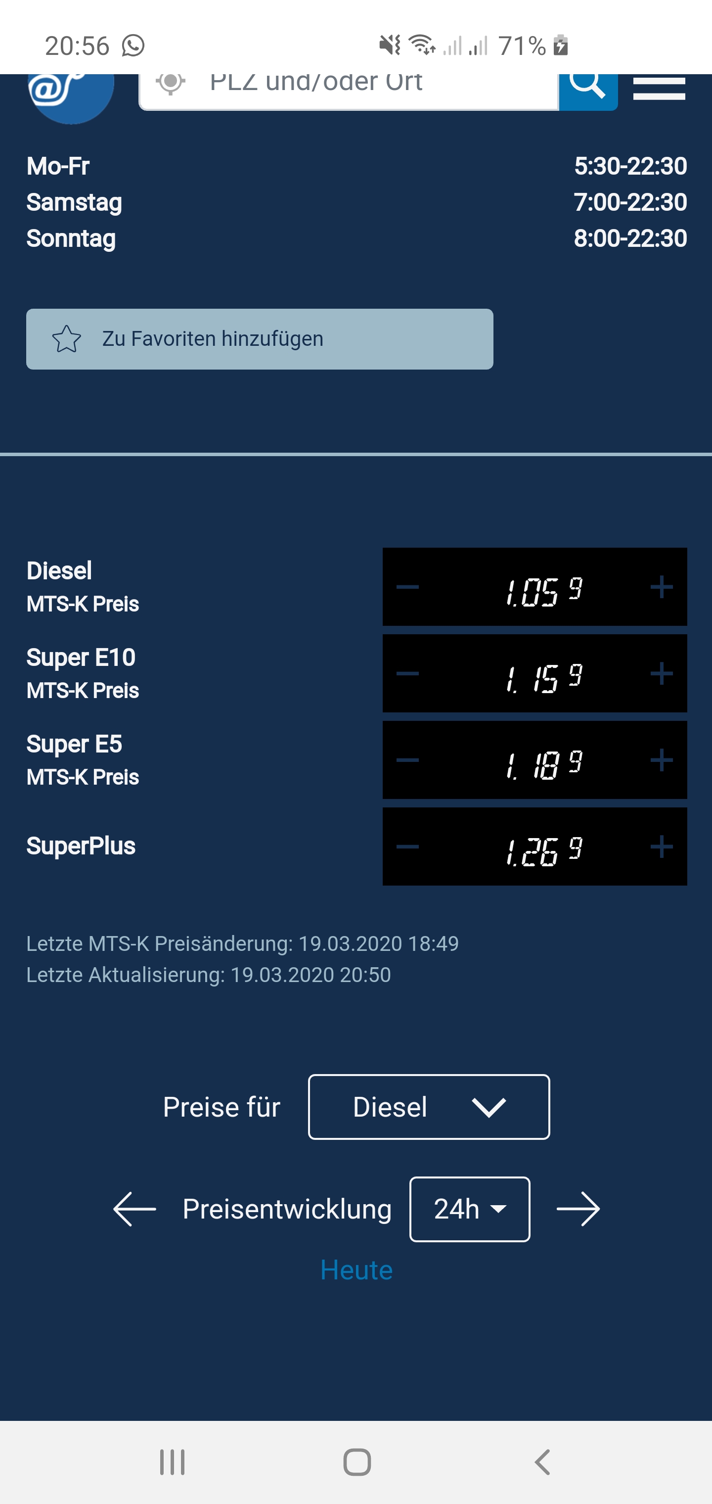 Heute bei uns Diesel 1,089 und E 5 1,239......kann wegen mir gerne noch billiger werden......aber im Moment fahre ich ja nicht viel da meine Tochter ja nicht arbeiten muss.....
