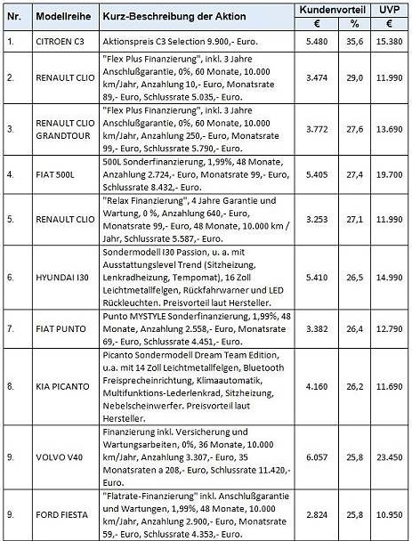 Fiat schafft es mit den Modellen 500L und Punto in die Top 10 der Schnäppchentabelle.