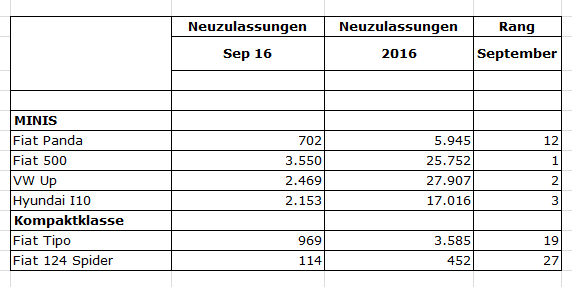 Neuzulassungen September 2016