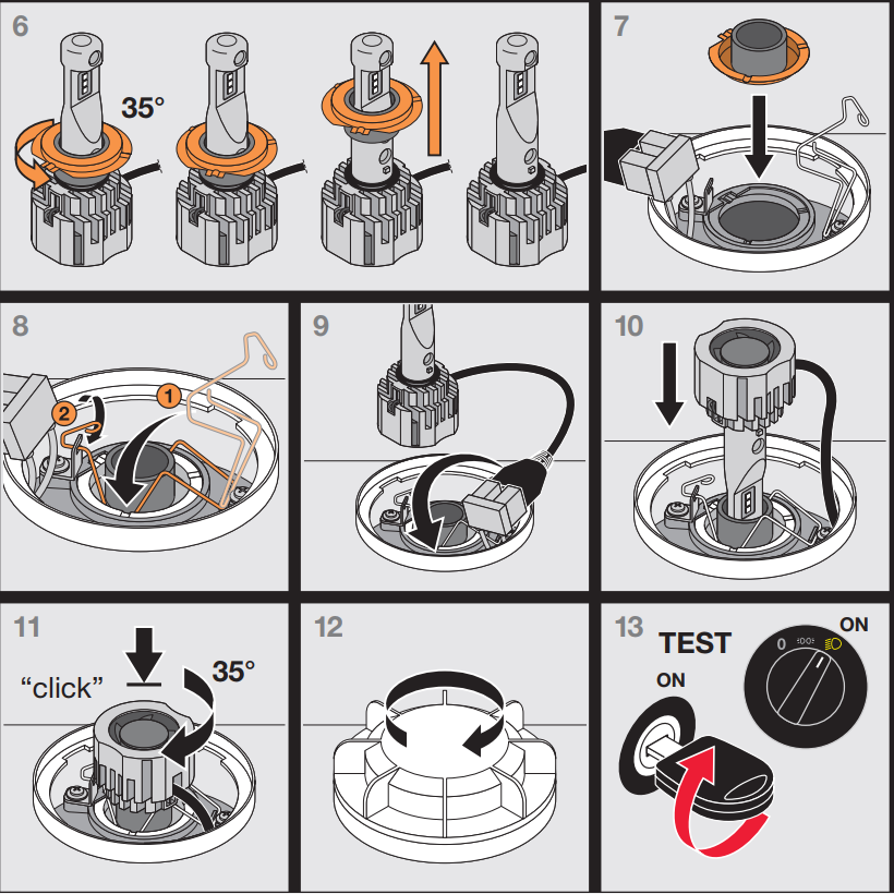 Selbst bei den bisher offiziellen illegalen leds gibt es ja diesen "drehring" der wird erstmal normal so eingesetzt wie es der scheinwerfer halt grade fordert. Dann gibt es innerhalb des Ringes Bajonettfassungen und zwar versetzt um 90 grad. Das ist aber noch nicht der clou. 90 grad retten einen ja nicht. Innerhalb dieses verschlusses ist nochmal ein spiel von 45 grad möglich. Ergo kann ich zumind. Bei den mir bekannten leds am ende den abstrahlpunkt im bereich von 360 grad einstellen. Und mehr soll sie ja nicht können. Ob waager. O. Senkr. Ist ja latte. Ich halte berufsbedingt zwar nicht viel von Osram aber diesen gag werden se je wohl verstanden haben. Ähnl. Probleme gibts ja in der gebäudetechnik auch. Siehe GU10 sockel etc.