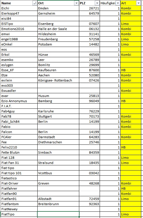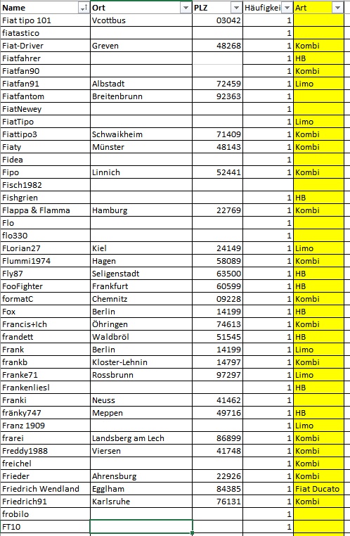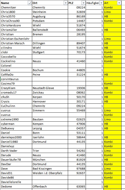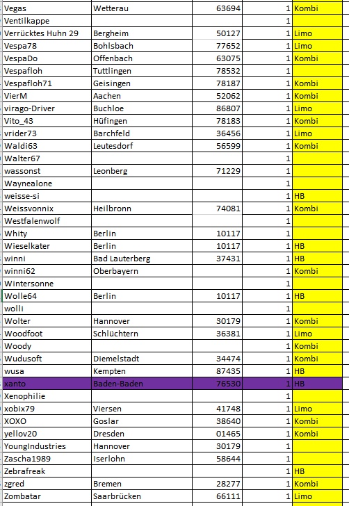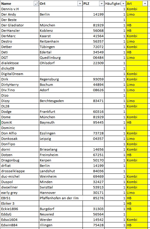 Hier Sven, guckst Du. Kannst gerne die Kürzel der Mitglieder samt Wohnort haben, aber nur wenn Du sie in 5 Tagen auswendig lernst....