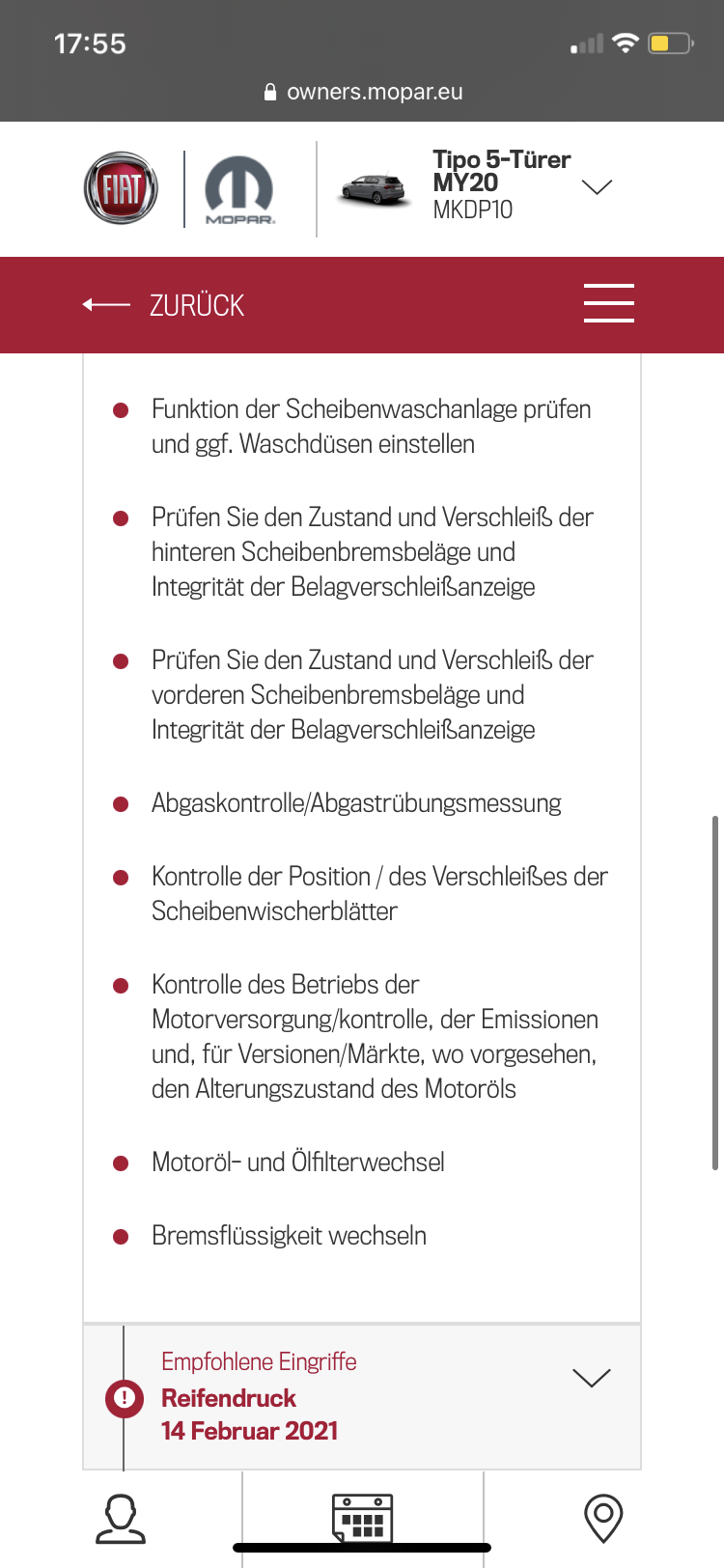 Laut Myfiat was gemacht werden Zündkerze und Bremsflüssigkeit in so eine kürzere Zeit?