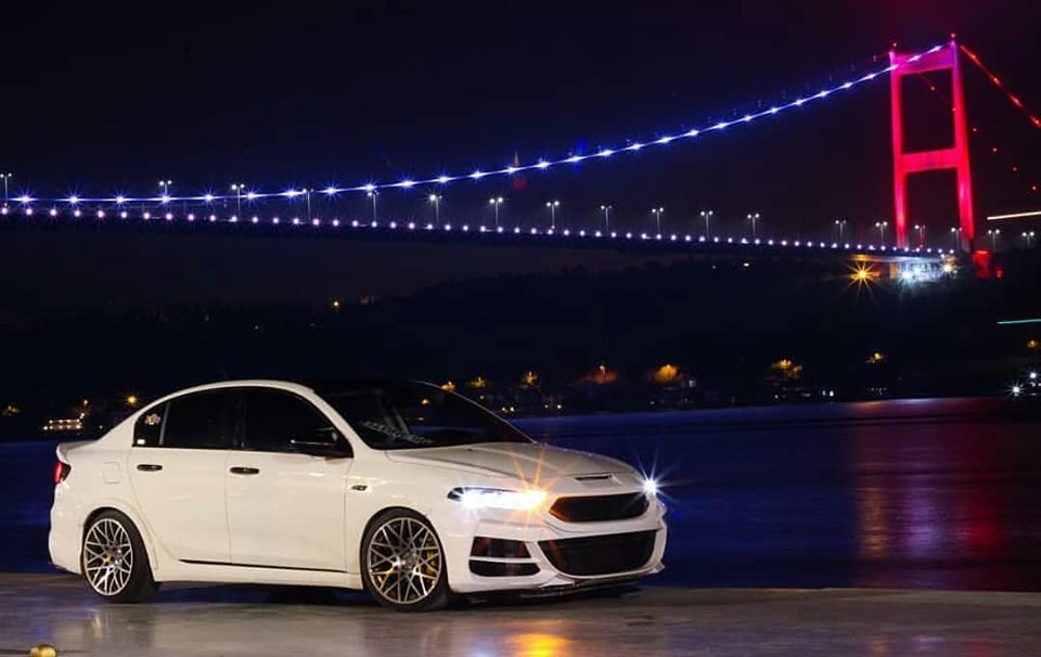 Der Heckspoiler schaut uns ja bekannt aus. Aber sonst würde er mir ja gefallen. Gute Tieferlegung mit (wahrscheinlich) 19"-Rädern, Frontschürze usw.