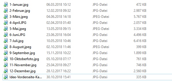 PS2: die Dateigrößen sind sehr unterschiedlich. Wir müssen mal schauen, wie die finale Qualität bei den "schwächeren" Bildern wird. Für mein Augustbild müsste ich sicher noch eine höhere Auflösung haben - versuche sie bis zum Wochenende aufzufinden und dann zu ersetzen..... ![]()