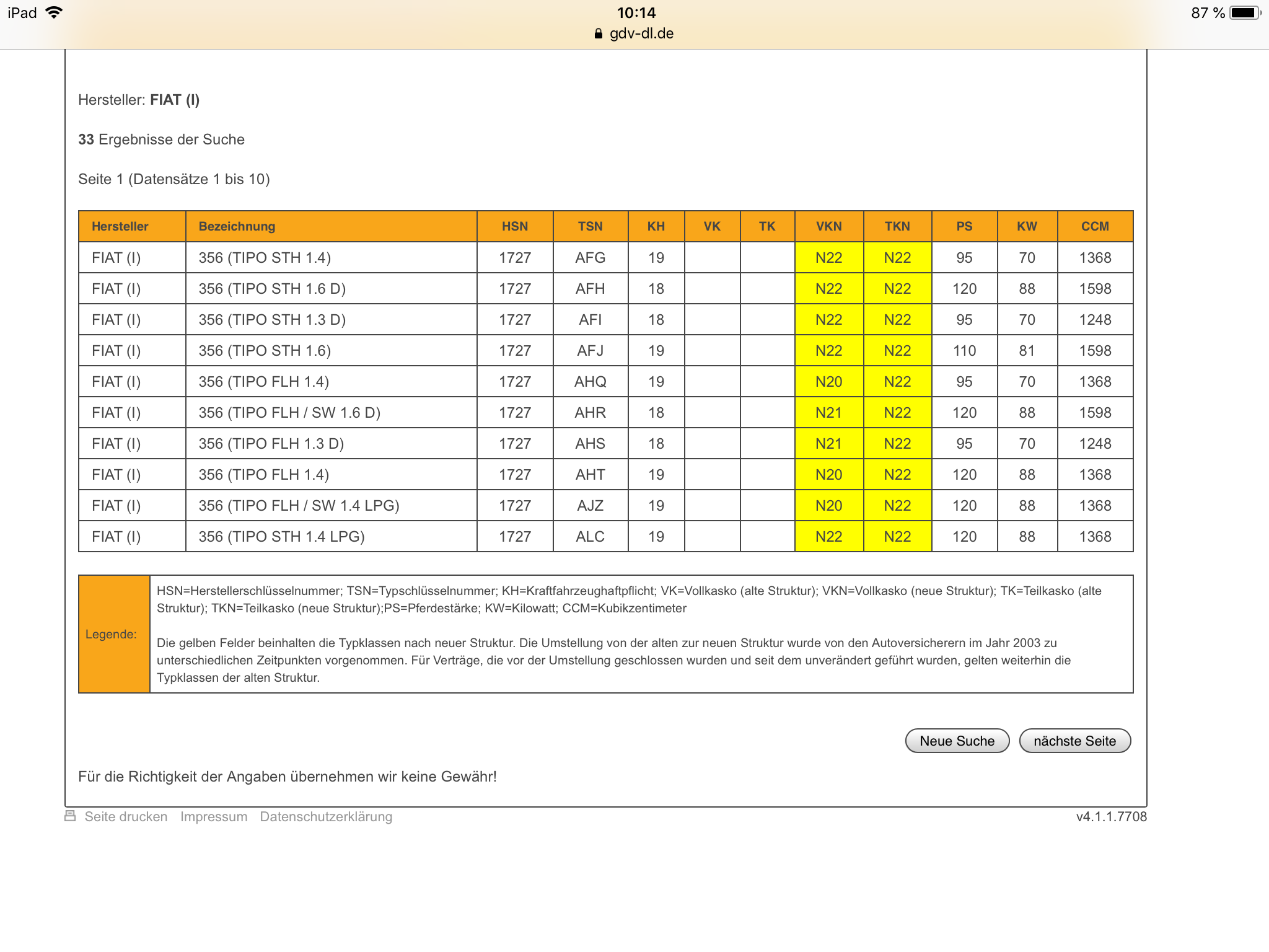 Hat jemad hier Versicherungs typschl.nummer für tipo 1,4-95ps. Limousine, Schrägheck und Kombi für mich?