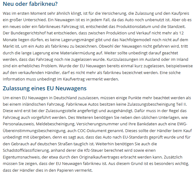 Hier noch einige Infos zu EU Autos, die Interessant sind!