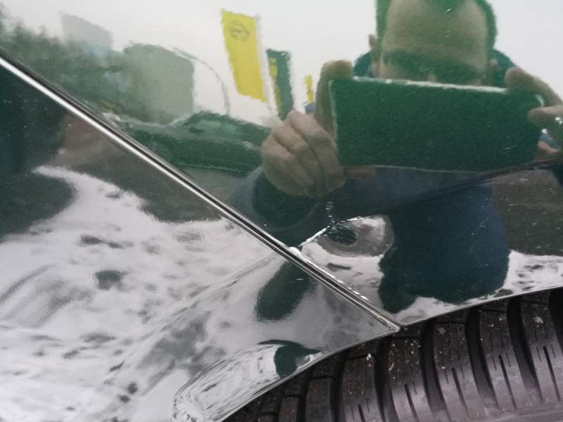 Nuja, ist halt sehr ärgerlich das alles, aber das sollte leicht zu beheben sein, der Lack ist unbeschädigt, halt die Delle und etwas Plastikabrieb.