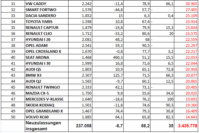 Top 50 Neuzulassungen 2018 in Deutschland!