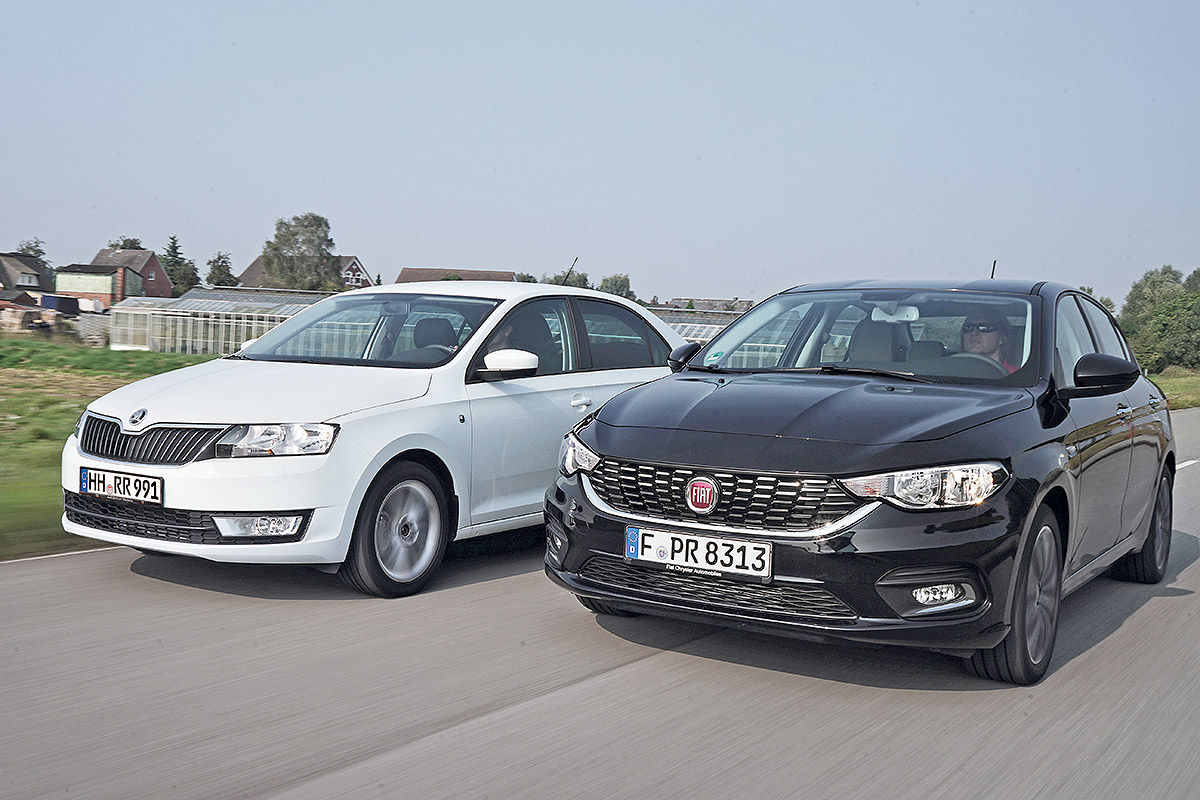 Schlichte Technik, kleiner Preis, dafür viel Auto – gut so. Mit mehr Komfort und Leistung wird's aber teuer. Fiat Tipo und Skoda Rapid im Test.