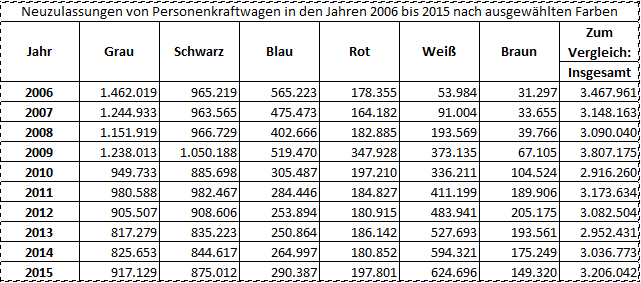 Ansonsten finde ich alle Farben schön, wenn man sie durch Colosseo Grau Metallic ersetzt.