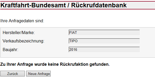 Für meinen Tipo liegt auch eine Rückrufaktion vor