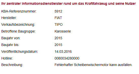 bei "MyFiat" eingeloggt. FIN eingegeben, keine Rückrufaktionen. Muss am 08. 12. aber sowieso zum Händler, weil die kleine Abdeckklappe auf der Rückseite des Lenkrads endlich gekommen ist. Fehlte bei mir bei der Auslieferung. Da werde ich dann mal fragen, ob mein Fahrzeug von einer Rückrufaktion betroffen ist.
