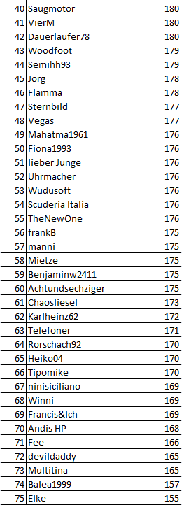 (Jetzt geht der Durchschnitt hier gleich wieder runter) -