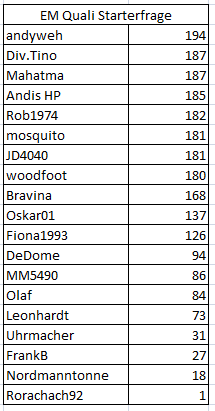 Niemand hat alle 20 Mannschaften richtig getippt!
