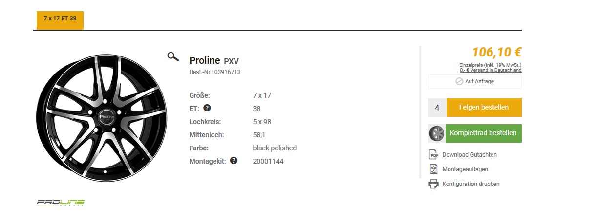 Ja, die 17er stehen drin, wobei dahinter nicht die "38" steht (Einpresstiefe müsste das sein), sondern die "41"..... die aber wiederum bei keinem der Angebote auftaucht..... ![]()