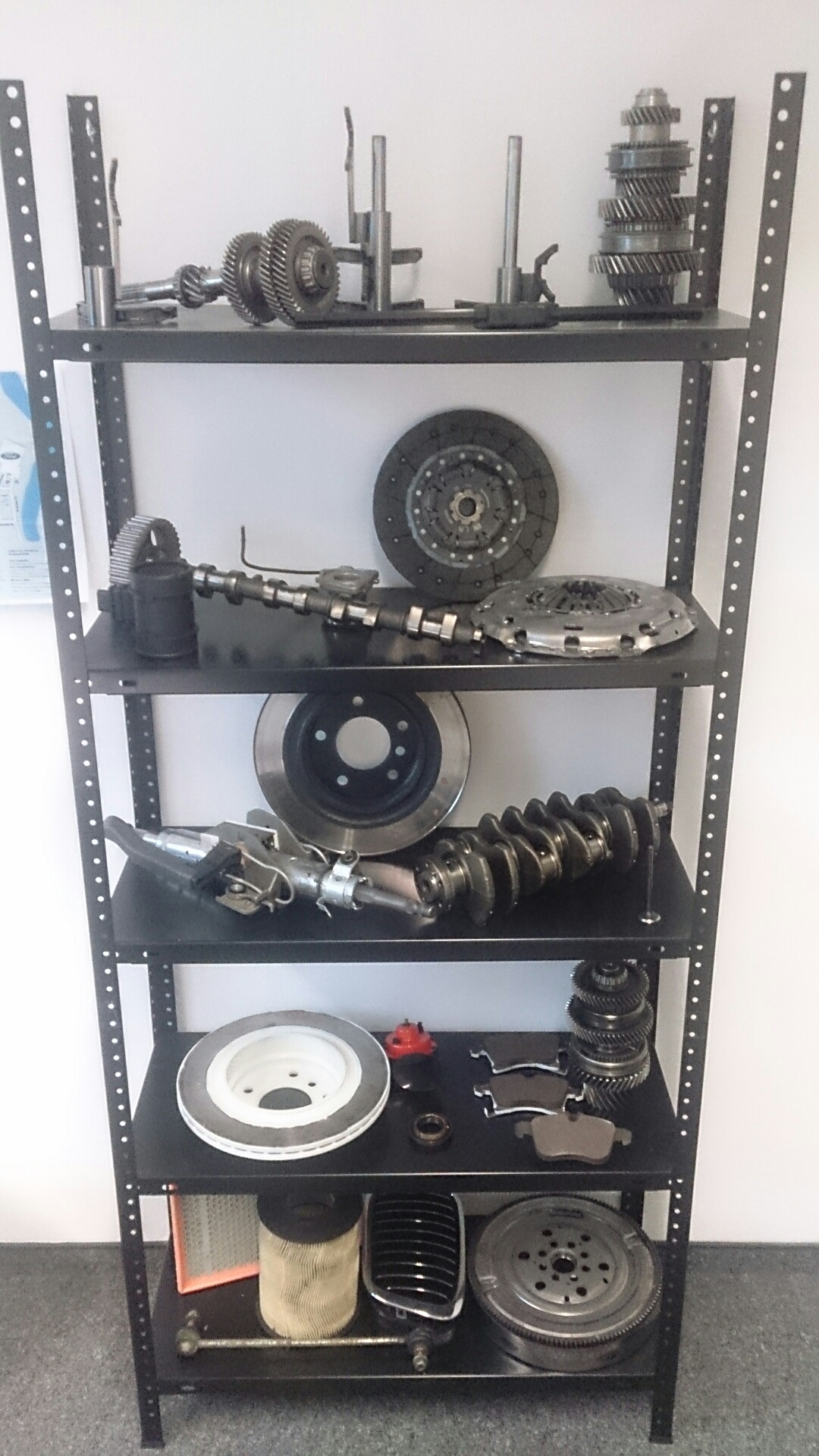 Ihr seid ja alle Auto-Enthusiasten und habt Benzin im Blut. Und ich darf als Berater im Automotive Aftersales Business auch "hautnah" am Markt sein. Was haltet Ihr von meiner privaten Teilesammlung, im Büro schön angeordnet. Das fing im letzten Jahr mit den Bremsscheiben meines Vaters an, die ich nach einer Inspektion bei BMW mir gerne mal anschauen wollte und hat sich dann fortgesetzt mit den Problemen meines Opel Astra H, Bj. 2009, mit MR32 Getriebe, dass sich im Dezember 2015 in Einzelteile zerlegt hat, dazu Kupplungssatz, Zweimassenschwungrad, Luftmassenmesser, verglaste Bremsklötze, kaputte Hupe etc.. ;( :S :cursing: