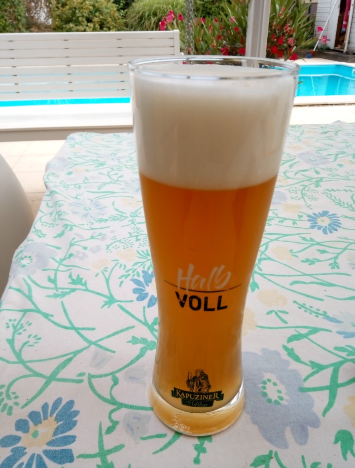 ) und Bier (für mich).Calimero parkt romantisch unter einem Apfelbaum, schön waagerecht abgestellt, ich lasse mal über Nacht alles an Öl zusammenlaufen, was da die letzten 1100km durch den Motor gekreist ist und bin gespannt, was mein Ölpeilstab morgen anzeigt.