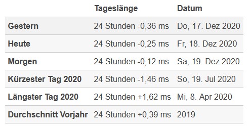 Dadurch sind die Tage mal länger, mal kürzer und die wechselnde