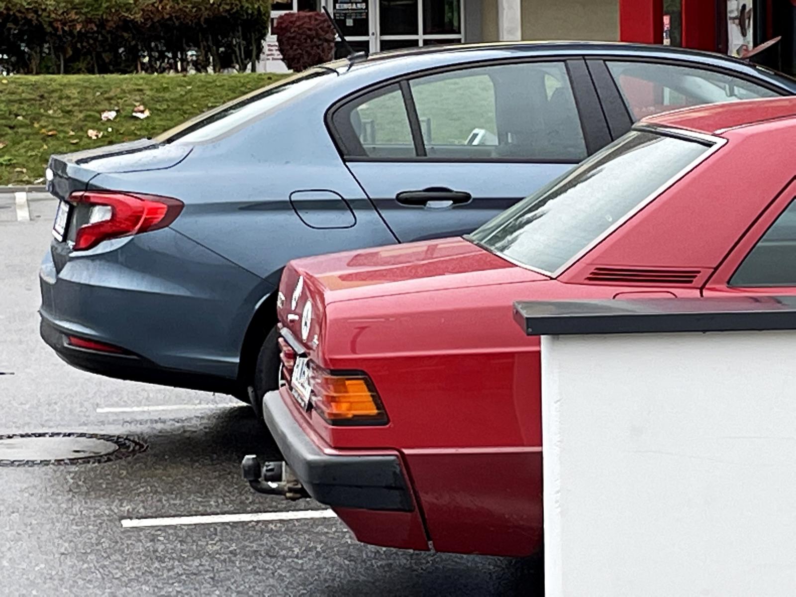 Ich musste das einfach fotografieren. Der Mercedes 190 wurde immer als "Mittelklassewagen" angepriesen.Damals in den 80er Jahren.