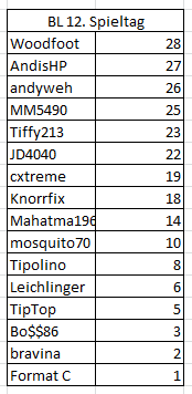 Unsere Punktekönige sind dieses mal Woodfoot und mosquito, beide 4 von 6 Punkte!