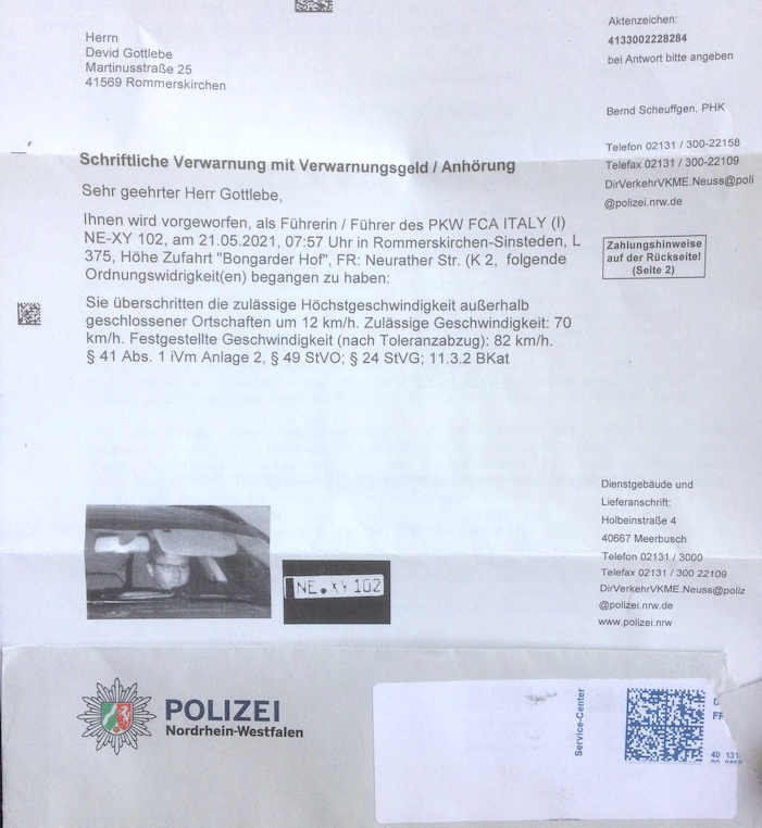 Gestern war es fast soweit. Nach der 2. Impfung schön beschwingt zurück nach Hause. Im allerletzten Moment vor dem Kölner Zubringer rechts neben der Hecke eine Radarfalle entdeckt. Und der vor mir Fahrende bummelte schon so sehr, dass ich kurz davor war dem 500er noch etwas die Sporen zu geben.