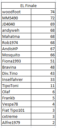 Mit der 1. Stimme wird der Sieger festgelegt! (1 Punkt)