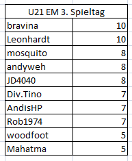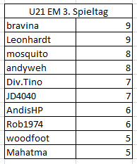 Spiel 3: Dänemark (5) 50%