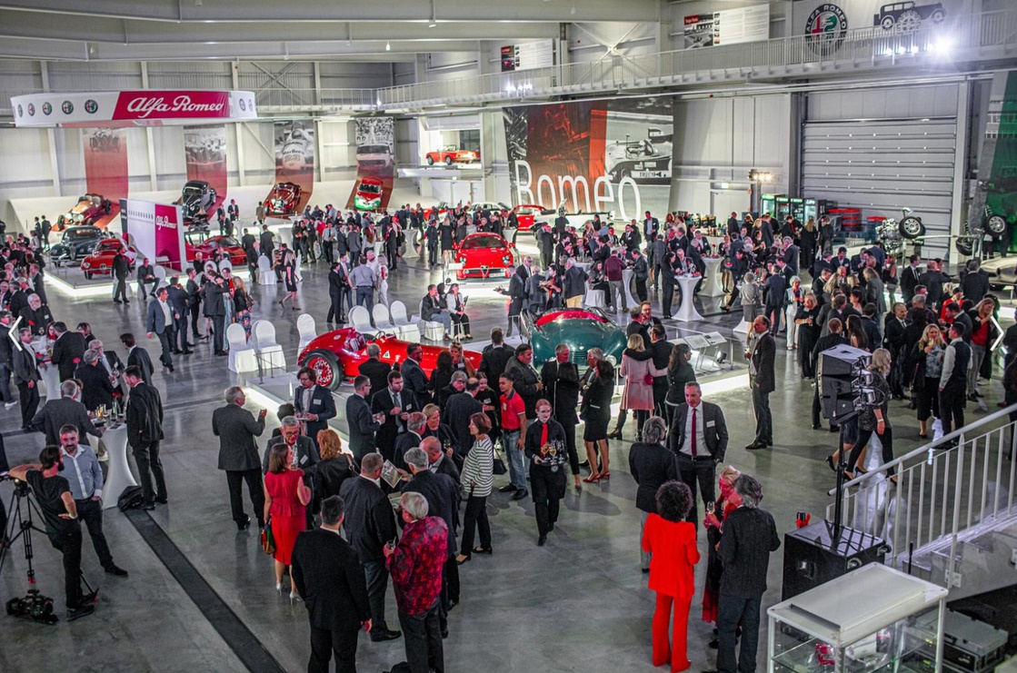 Zum Start sind legendäre Rennwagen wie der Alfa Romeo SE048SP oder der unter dem Spitznamen „Disco Volante" berühmt gewordene Alfa Romeo 1900 C2 zu sehen, außerdem einzigartige Serienfahrzeuge wie der Alfa Romeo 6C 2500 Super Sport sowie technische Exponate wie ein Formel-1-Triebwerk oder ein Antriebsstrang. Die komplett im Design von Alfa Romeo ausgestattete Halle zeigt darüber hinaus interessante Details aus der Geschichte des Unternehmens, zum Beispiel die Entwicklung des berühmten Markenlogos.