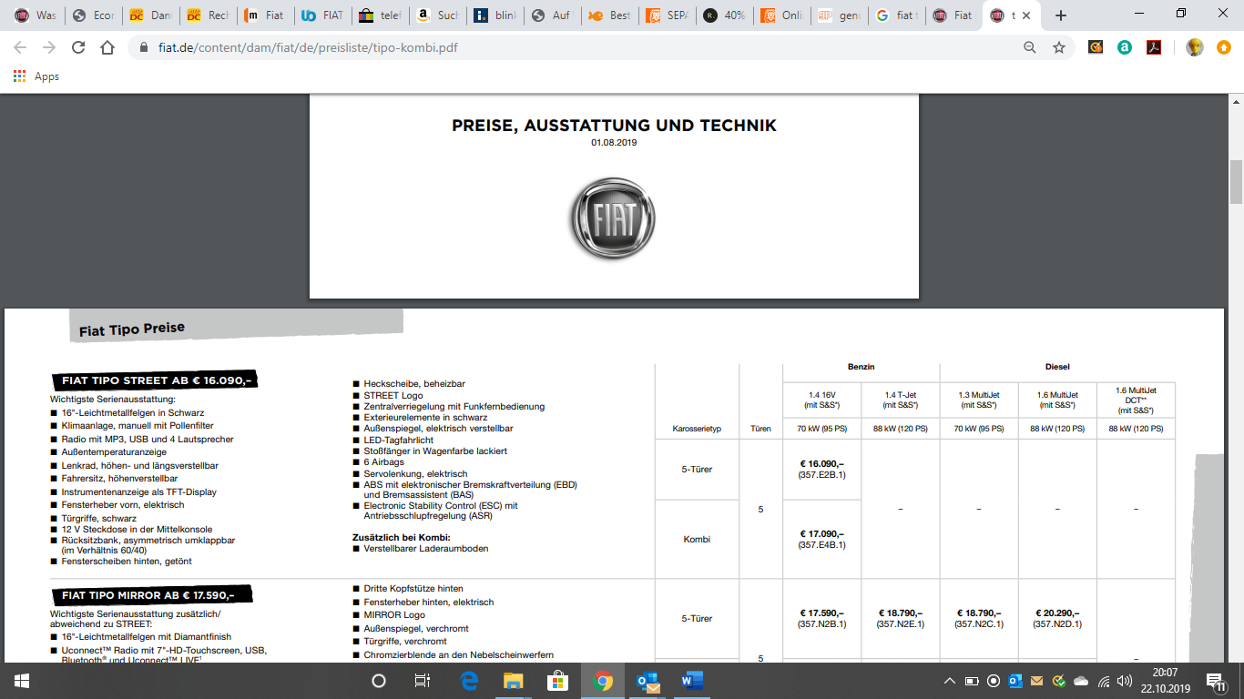 Das einzige was mich ärgert das ich mir den 2. Boden im Kofferuam selber machen musste. Mein Fiathändler wollte etwas über 500 Euro für das scheiß Brett haben. -