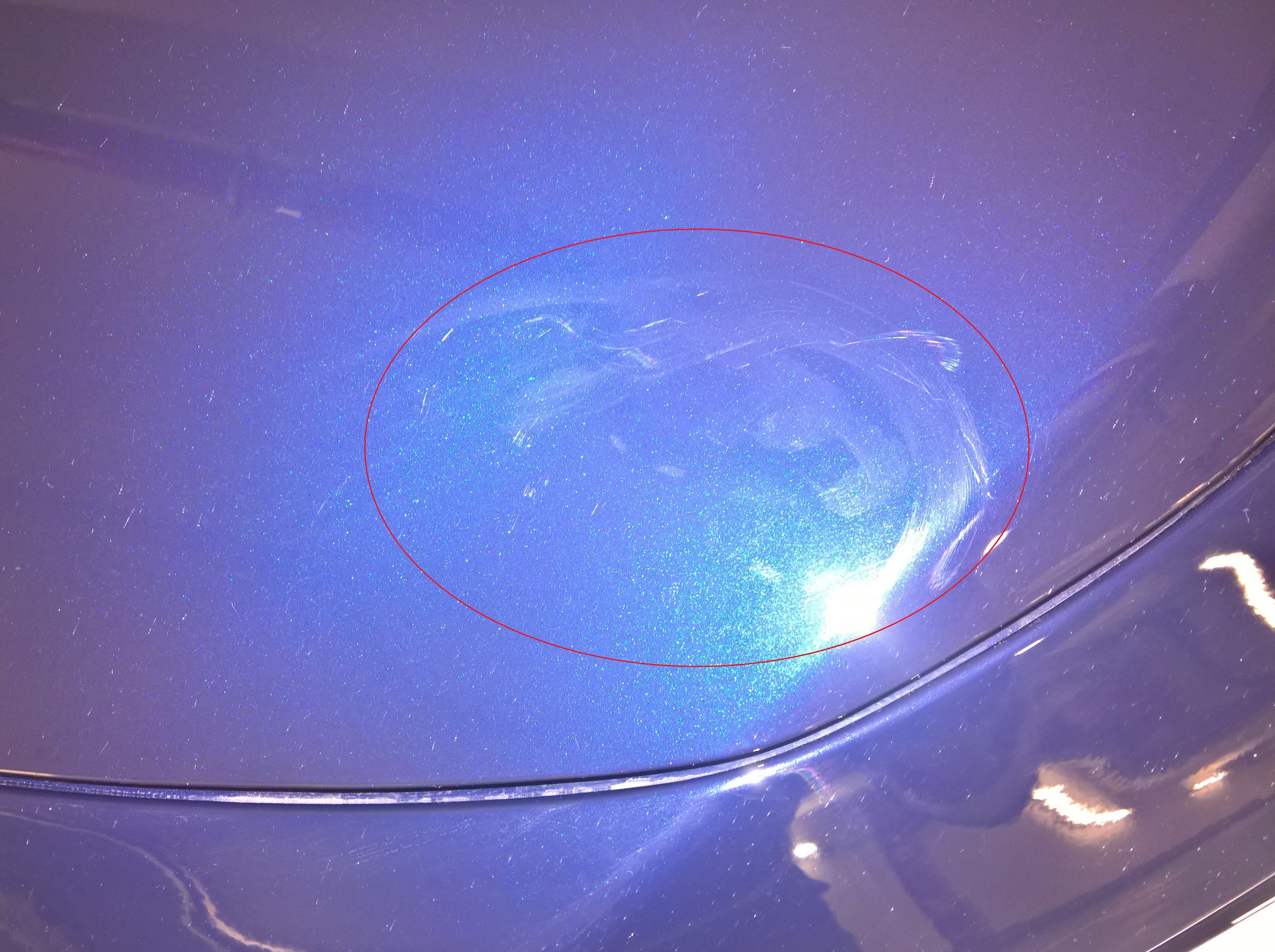 Ich muss zugeben ich weiß natürlich nicht ob diese durch die Aufbereitung entstanden sind, aber ich vermute das hier "trocken" bzw. mit dem falschen Material poliert wurde - interessant ist allerdings das am restlichen Auto nichts zu finden ist...