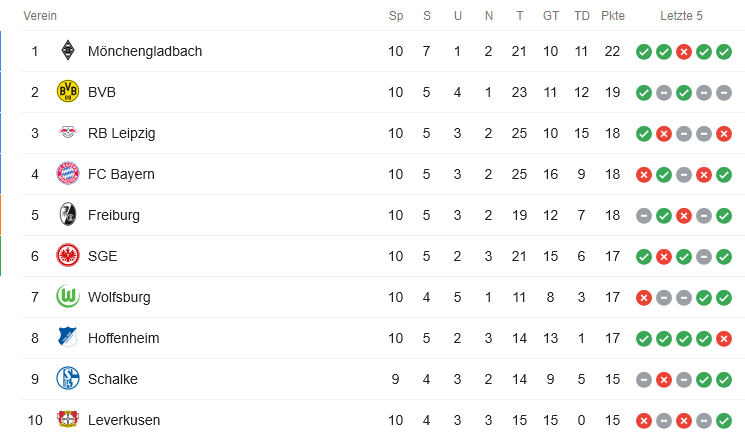 2: Gladbach (5) 42%