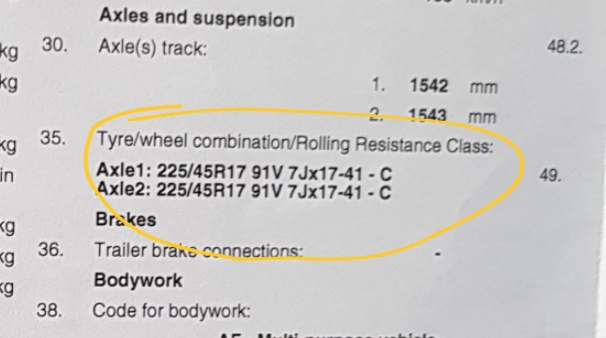 Aktuell habe ich 225 45 R17 Reifen auf Alufelgen drauf.