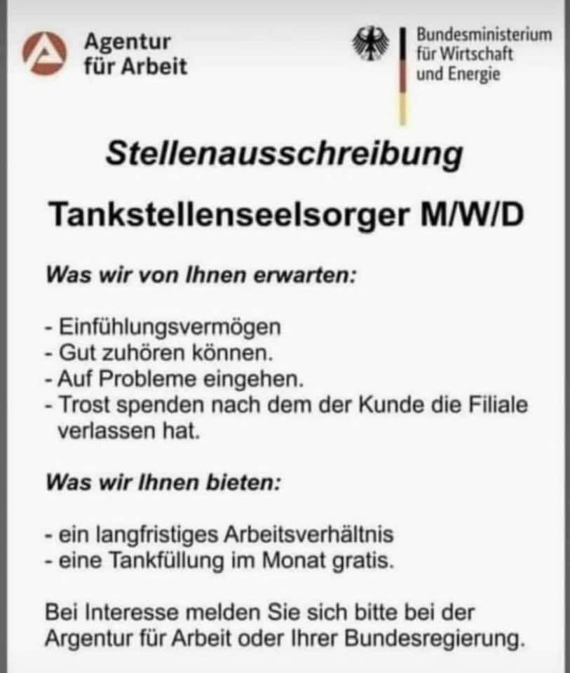 ja nicht mehr lang da stehen bei Shell die Seelsorger anne Zapfsäule