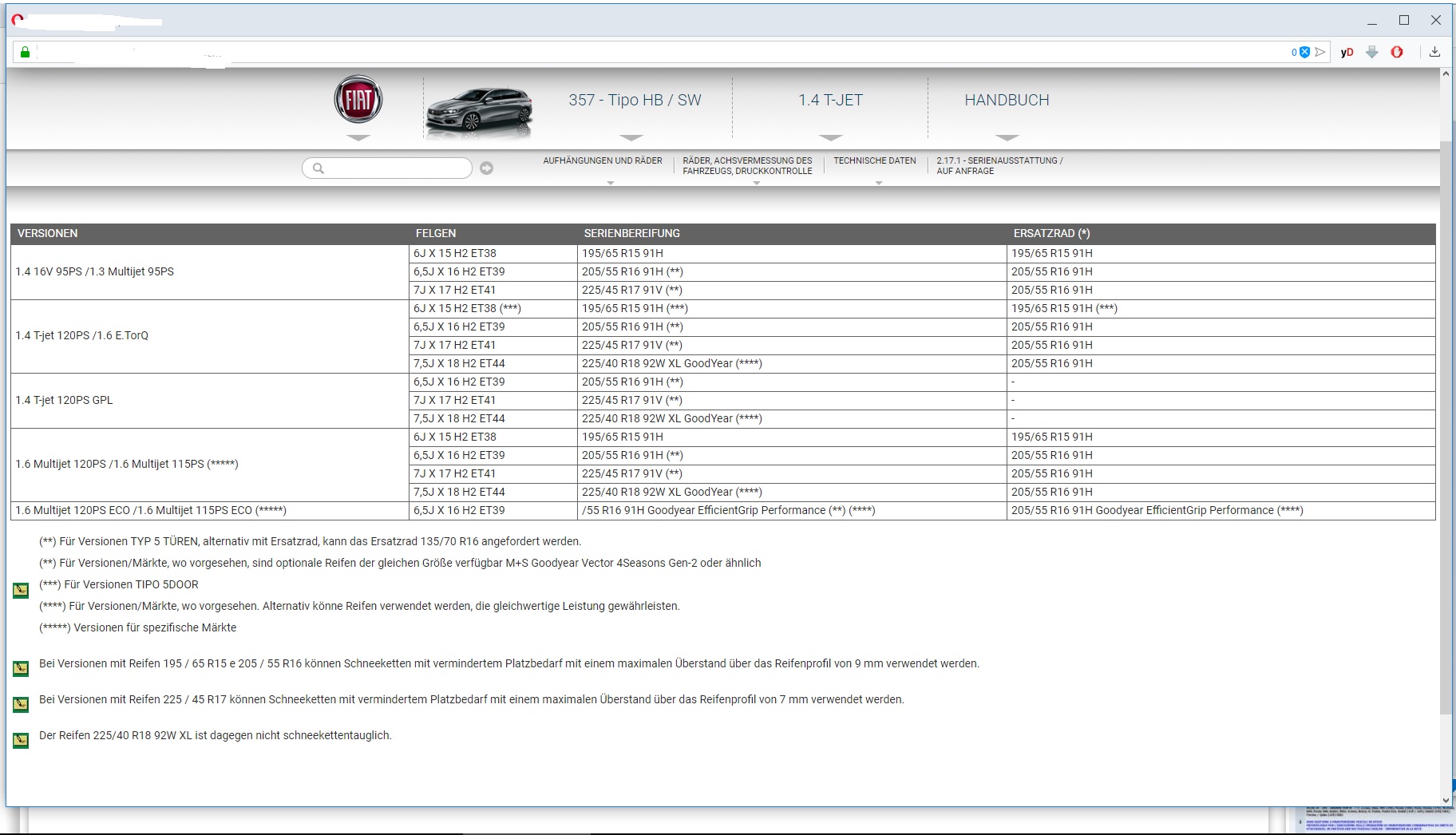 dazu mal ein Auszug aus der offiziellen Serienbereifung des Tipos.