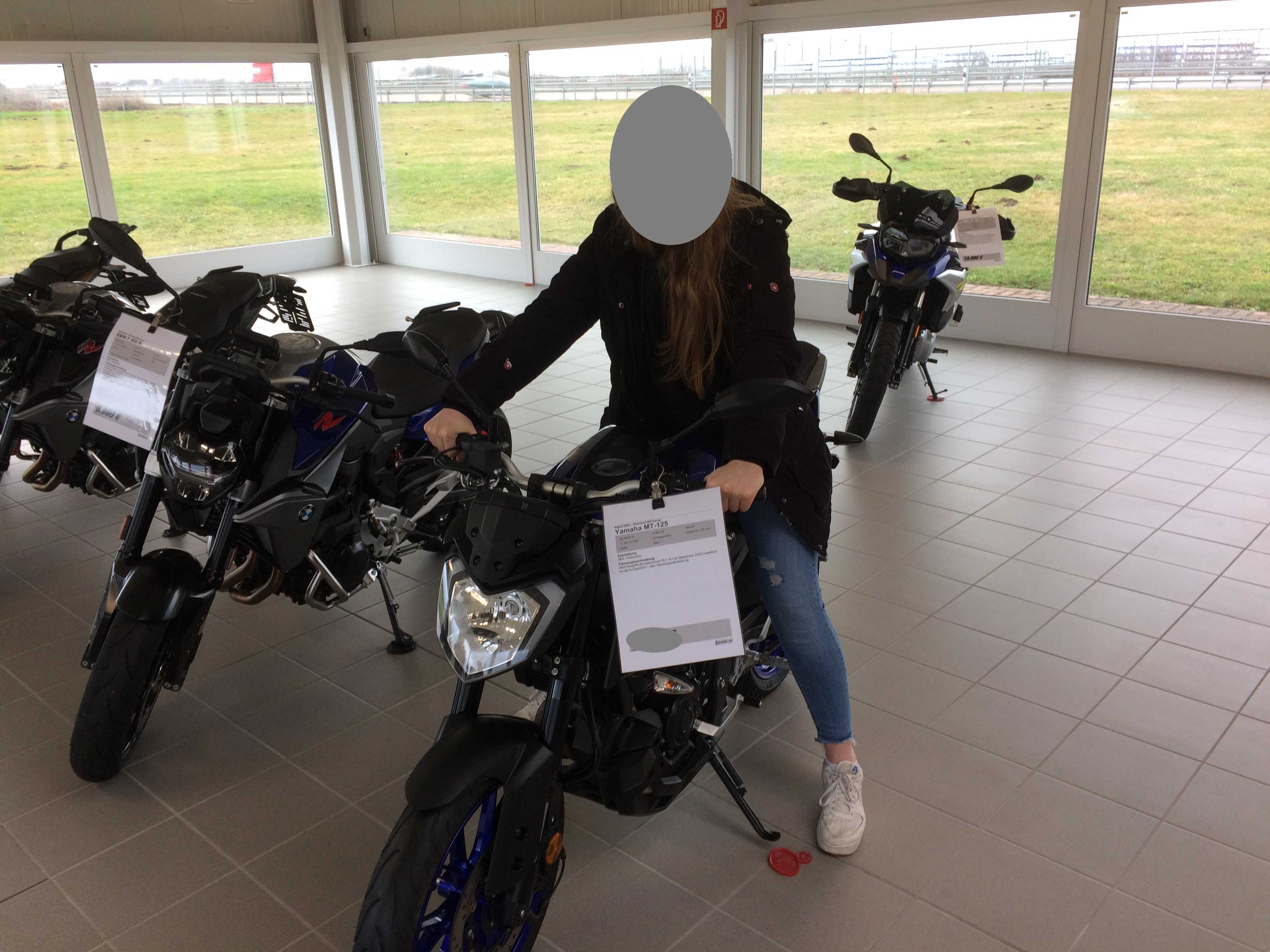 Eine Yamaha MT 125, 2 Jahre alt mit ABS, Griffheizung usw. Steht noch fast neuwertig da und das wichtigste: das Kind ist zufrieden
