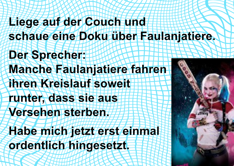 Kann ich nach 2 Tagen stupides Internetting und lustige-Bilder-fürs-Forum-suche doch tatsächlich mal 1 Std. arbeiten.