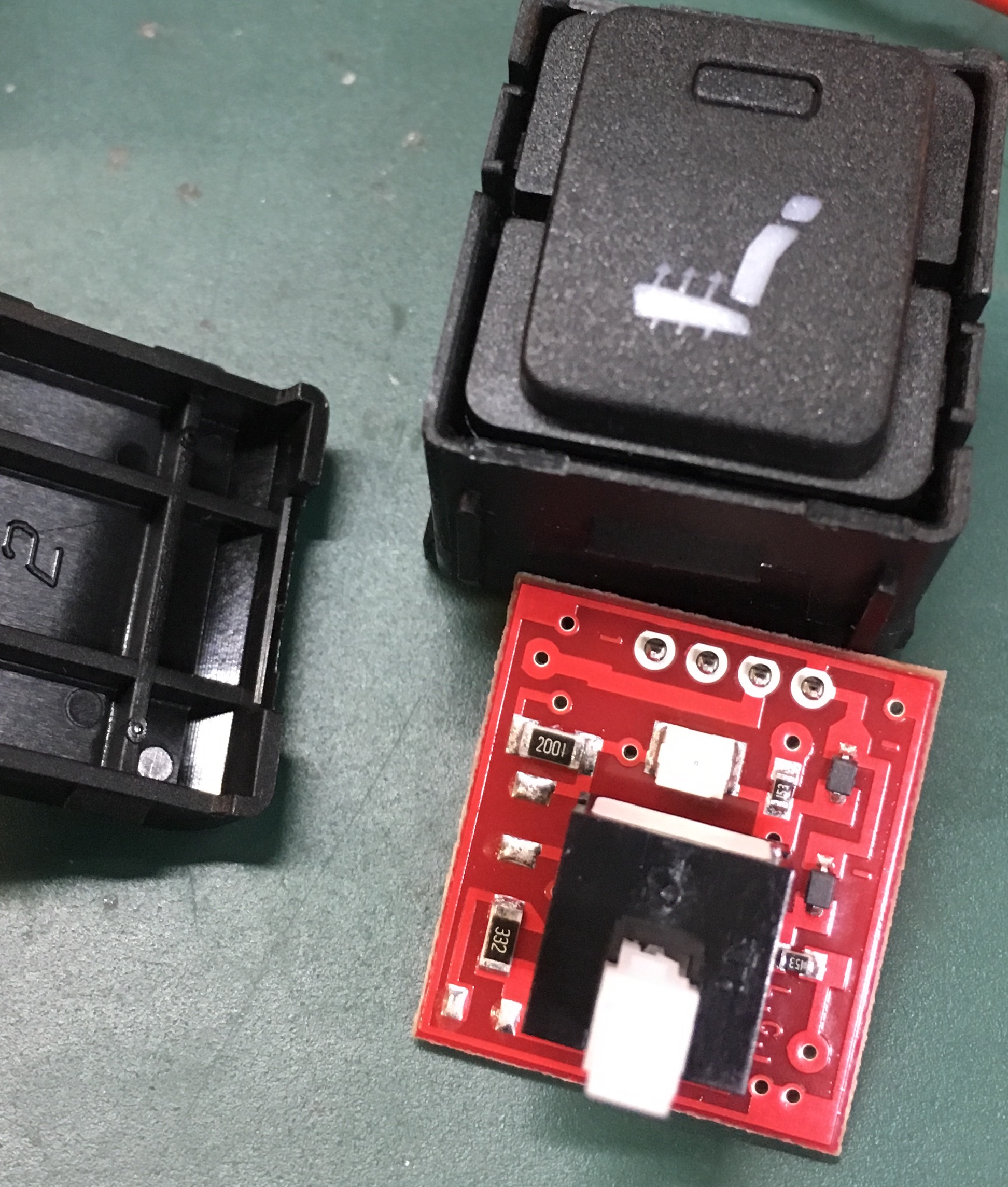 Da ich die nackten Platinen ja schon in der Hand hatte kann ich zumindest bei den unteren Teilen (USB, AUX, Strom und Sitzheizung) sagen, dass es definitiv rote Smds sind und keine Folie. Bei den Sitzheizungsschaltern sind es sogar zwei LEDs. Eine fürs Bildchen in rot und eine für Heizung an in orange.