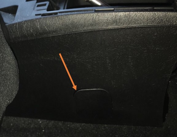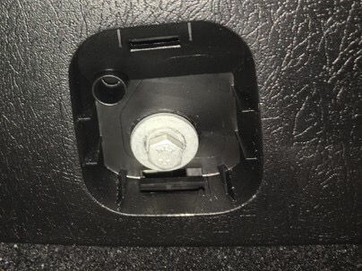 Jetzt müssen wir an das hintere Ende des Tunnels. Am besten die Sitze ganz nach vorne stellen. Rechts und links findet man jetzt eine Kappe, die man leicht raushebeln kann. Dahinter verbergen sich wieder zwei Schrauben die ebenfalls raus müssen.